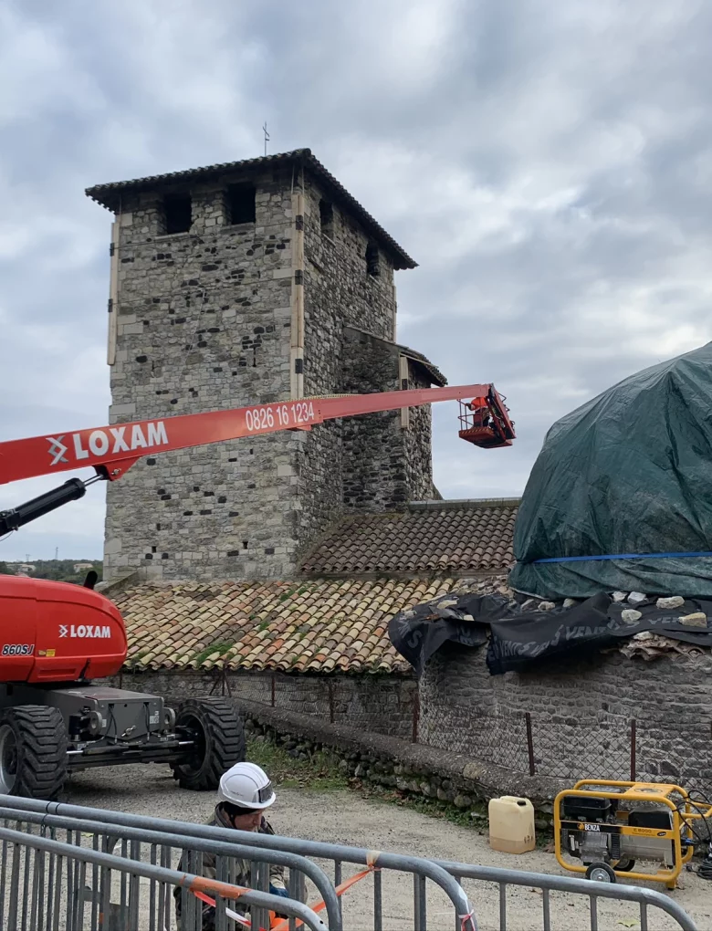 Le chantier d’étaiements et de mesures conservatrices globales est en cours et concerne les étaiements intérieurs de la nef et du bas-côté, ainsi que la mise en place d’une structure parapluie en extérieur. Ces interventions permettront à la ville du Teil de prendre le temps de monter un programme de travaux définitif, tout en évitant la dégradation progressive de l’église.