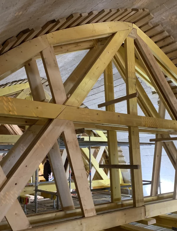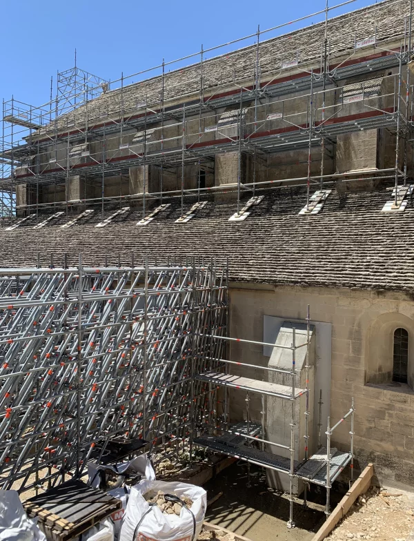 Ces travaux s’accompagnent de reprises en sous-œuvre avec l’ajout de micropieux en fondation, d’une restauration des parements intérieurs et extérieurs, de la réfection d’un escalier en pierre de taille menant à l’ancien dortoir des moines ainsi que de la révision de la couverture en lauzes.